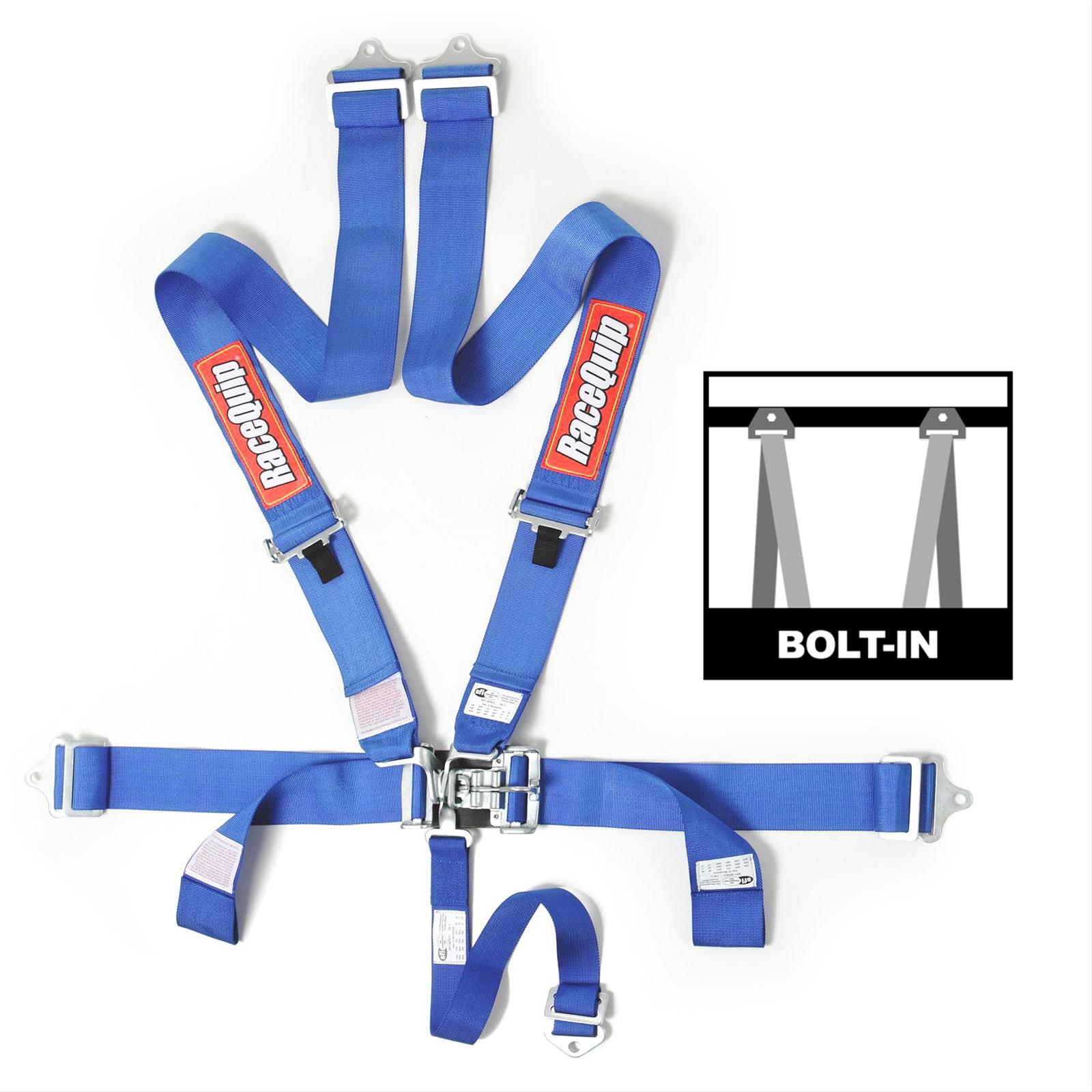 RaceQuip’s Latch & Link 5-point auto racing harness set has twin individual shoulder belts and is manufactured using premium 3″ polyester webbing and drop forged steel hardware to exceed the SFI 16.1 rating. Shoulders adjust from 20″ to 62″ and the lap belt adjusts from 20″ to 60″. All RaceQuip 711 series belts come as a “pull down lap” design, which means that the lap belts must be pulled down and away from the center latch & link buckle mechanism to tighten. All RaceQuip Latch & Link motorsports harness sets are distinguished by a pivoting “hammer,” called a Duckbill, which is located on the lap belt and locks all of the belts into place by snapping down into a detent. Both shoulder belts and the sub-belt are hooked over the link; the link is inserted into the latch on the lap belt; the Duckbill is then brought down into and over the link, securely holding all of the pieces in place. Since RaceQuip seat belt sets are “double adjustable”, lengths are simply adjusted on either end for ease of installation. Using the included three bar slide you can mount the belts by either wrapping them around a rollbar or by bolting them in place with the supplied ends (bolts not included). Snap hook ends and eyebolts are sold separately if the user wishes to install belts in that manner. NOTE: RaceQuip harness sets and seat belts are NOT D.O.T. / FMVSS 209/302 certified for on highway use. They are only to be used in racing vehicles off of public streets and highways. All racing harness sets are designed to be mounted in a racecar to a rollcage or harness bar – if you do not have either, you should not try to install any RaceQuip harness set or seat belts. Available in black, red, blue, yellow, purple, platinum, green, pink, and orange – one “set” of seat belts equals one seat.