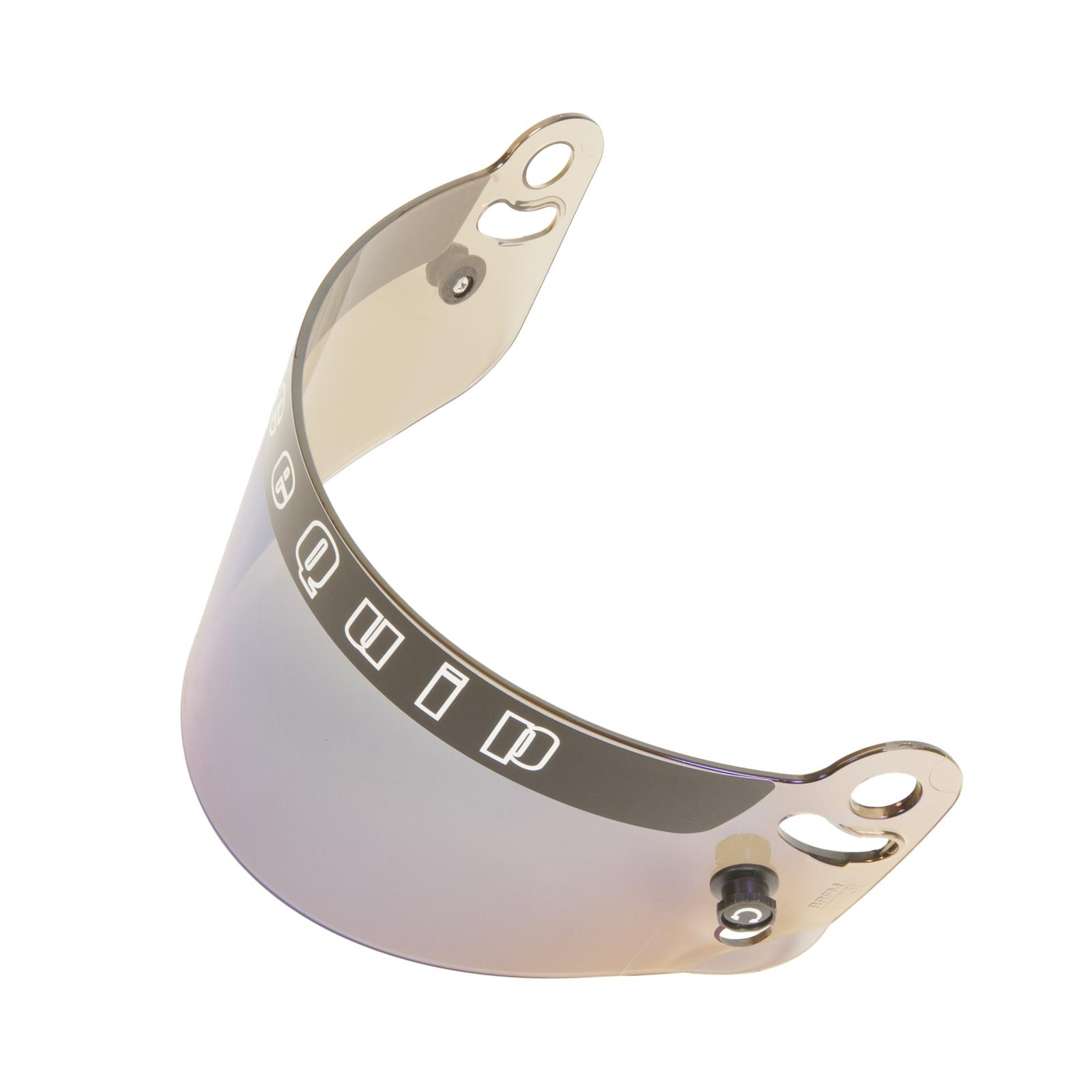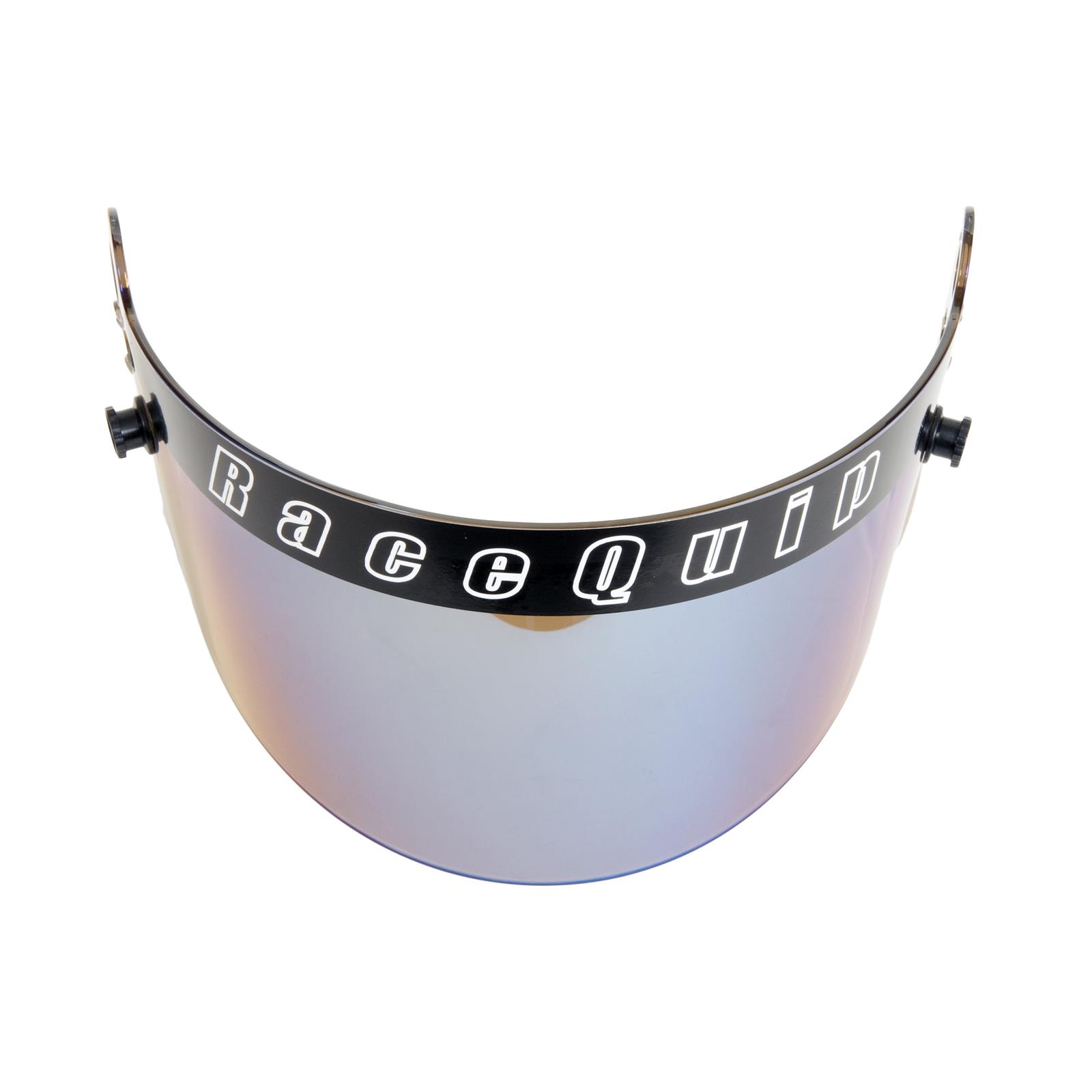 ‘This blue irridium polycarbonate faceshield is designed to fit RaceQuip PRO SA-2010 and SA-2015 Helmets as well as SFI-24.1-2010 and 2015 Youth Series Helmets. RaceQuip faceshields (sometimes called helmet visors) are formed from 3mm thick distortion free high strength polycarbonate. A Visor Strip and Tear-Off Posts are included. RaceQuip offers several different helmet face shields to meet any racing conditions you may encounter, from standard clear replacements to dark smoke tint, mirror or blue irridium for bright sunlight conditions, and amber for nighttime racing. All shields are distortion free high strength 3mm polycarbonate and include a visor strip and tear off posts.