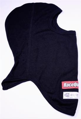 This RaceQuip SFI 3.3 rated double layer underwear hood, also called a balaclava or head sock, is knit from a blend of aramid and FRC fabrics to achieve a comfortable fire retardant garment. The properties of this unique fabric structure create a lightweight fabric that performs like Nomex® yet is much more cost effective. The Fire Retardant Cotton (FRC) component of the fabric promotes a soft and supple lightweight feel. Since it’s hypoallergenic, it won’t irritate your skin like some other materials tend to do. This proprietary fabric blend is also superior at wicking away mositure from the skin and dries quickly. Seams are flat sewn and strategically placed to avoid pressure points and promote comfort. All RaceQuip fire retardant underwear garments are machine washable and retain their shape well. This hood is a two layer, one eyeport design with a long bib in the front. Exceeds SFI 3.3 rating and is available in black, one size fits all adults.