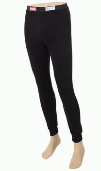 RaceQuip SFI 3.3 rated long underwear bottoms are knit from a blend of aramid and FRC fabrics to achieve a comfortable fire retardant garment. The properties of this unique fabric structure create a lightweight fabric that performs like Nomex® yet is much more cost effective. The Fire Retardant Cotton (FRC) component of the fabric promotes a soft and supple lightweight feel. Since it’s hypoallergenic, it won’t irritate your skin like some other materials tend to do. This proprietary fabric blend is also superior at wicking away mositure from the skin and dries quickly. Seams are flat sewn and strategically placed to avoid pressure points and promote comfort. All RaceQuip fire retardant underwear garments are machine washable and retain their shape well. This pants bottom is a long john design with cuffs at the ankles and exceeds the SFI 3.3 rating. Available in black in sizes Child X-Small to Child X-Large – remember that racing underwear is designed and built to fit snugly.